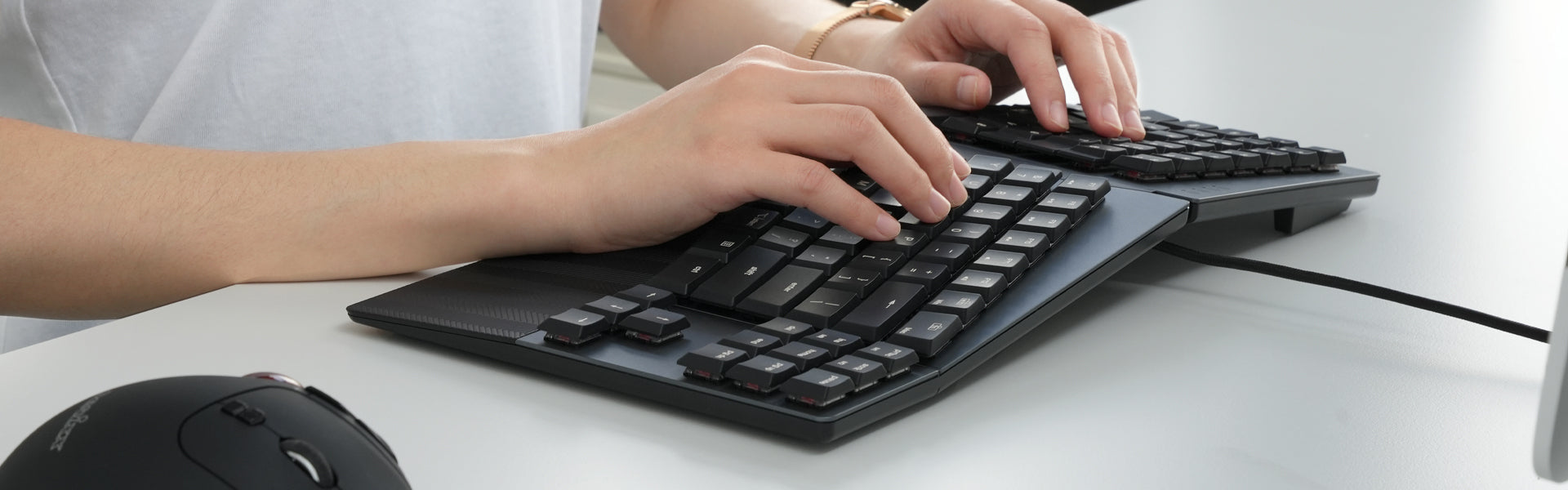 ルサイズとテンキーレス(コンパクト)デザインからお選びいただけます。 両キーボードとも、人間工学的原理に基づいて構築されており、繰り返しのストレスによる緊張による怪我を軽減および防止します。